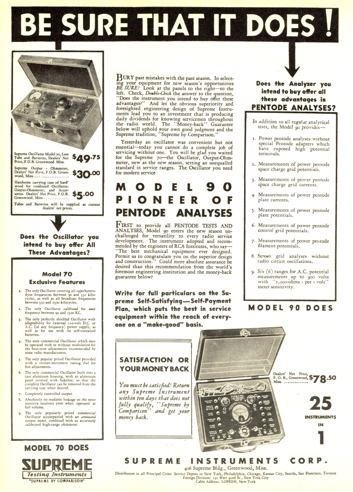 In the 1930s Supreme published technical flyers to help sell their equipment to the radio repairman.
